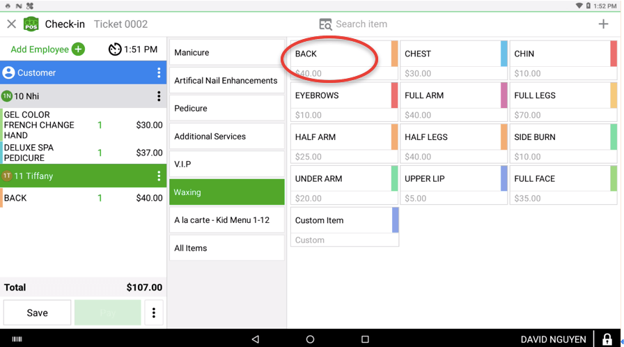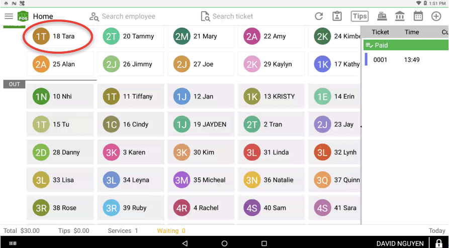 10. Choose Ticket in Waitlist to edit and pay. If the ticket is not paid, will go to check-in screen to edit and pay ticket. If the ticket has been paid, you will see detail information as transaction, add and split tip, print ticket...