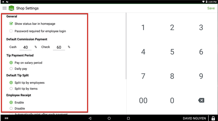2. Choose “Password require for Employee to login” if you want when opening the Nail Salon POS app, Employee need to enter the password