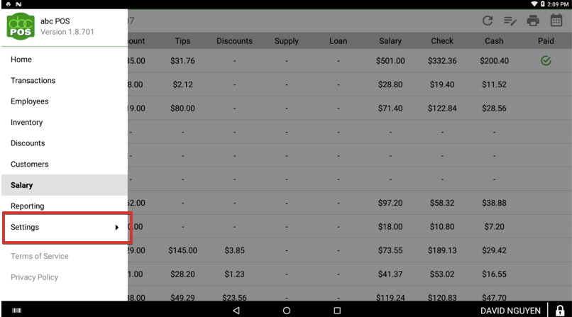 2. Tap 3 line on upper left corner to edit tickets. This function allows edit ticket as change Employee, add Item…Note, if the ticket has been paid, the modifications only affect the salary of the employee, not the old payment of the customer